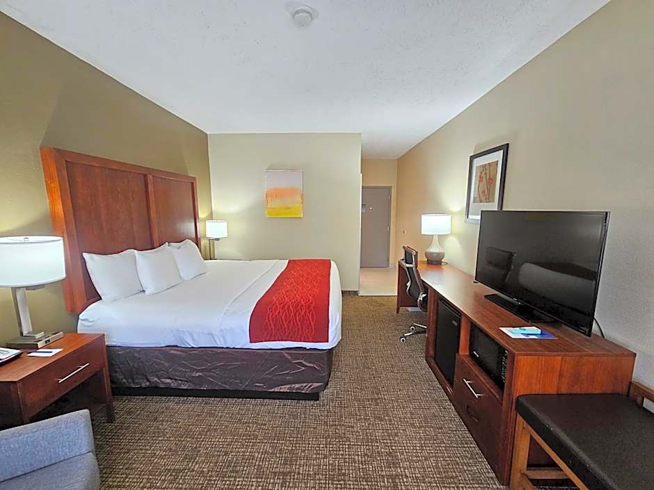Room options include a Suite with a king bed (accommodates 2 adults and 1 child), a 301-square-foot King Room with a king bed (accommodates 4 adults and 3 children), and the Room - 2 Queen (Family) at 301 sqft with two queen beds (accommodates 4 adults and 3 children). All listed rooms are non-smoking, providing straightforward setups for different group sizes and preferences.